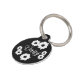 黒い背景に白いデイジーと犬の名前が表に、裏には読みやすいように白い背景に黒い電話番号と住所が入ったペット用名札