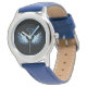 黒い白熱[赤熱]光を放つ背景の青いエンジェルウィングス 腕時計