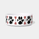 黒い肉球の足跡とハート | 編集可能な色 | 名前 ボウル