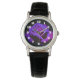 黒い背景に水滴を付ける紫のバラ 腕時計