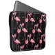 黒い背景に2つのピンクのフラミンゴ。シームレス ラップトップスリーブ