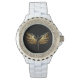 黒い背景の黄金の天使の翼 腕時計