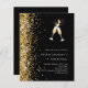 50エレガント歳(または任意の年齢)の誕生日パーティー。クラシック黒の背景。フェイク飾金ゴールドグリッターと笛のペア。名前とパーティー・詳細のパーソナライズおよび追加1枚= 1枚の招待状を印刷したエッジからエッジ