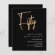 彼と彼女の両方のための50歳の誕生日のパーティーのための招待モダン。黒い背景と大きな書金ゴールド文字で50フェイクという単語。名前とパーティー・詳細のパーソナライズおよび追加1枚= 1枚の招待状を印刷したエッジからエッジ