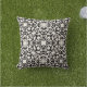 私たちのシックな黒と白の屋外装飾用クッションであなたの夏のパティオまたはプールサイドのデコパターン(の模様が)あるアをリフレッシュ。デザインは暖かいスペインのクリームアイボリーの背景に黒い複雑なタイル模様を備えている。パターンは逆側で繰り返される。