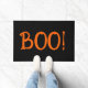 背景には、カスタマイズ可能な黒無地の色が含まれる。ハロウィーンテーマ10月の装飾。ボイカスタマイズーの「ブー!」タイポグラフィ。