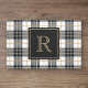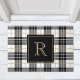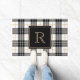 黒と茶色のタータンチェック格子状家族モノグラム ドアマット