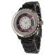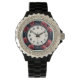 時計の文字盤を黒と赤のバラが囲み、宝石ケースに入った黒の腕時計