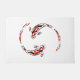黒と赤の一対のコイ魚が泳いで回り合うドアマのまわりにット。ミニマルシンプルデザイン。