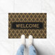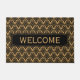 黒と金ゴールドのアールデコ扇花のパターン ドアマット