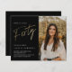 ミニマルモダンス40th誕生日パーティの招待状はスタイリッシュ金ゴールド箔の番号の手書きスクリプト40とクラシックセリフフォントのパーティー詳細の黒い背景色にフェイク、と驚き大人誕生日の招待と女性エレガントにシンプルは、黒の背景色を任意の色に変更することができます。