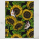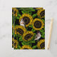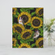 ひまわりとゴルフィンチを使用した手描きパターンデザイン