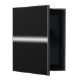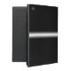 薄い陰刻は黒い背景の中心を通って走ります。 ストライブ柄の端は柔らかく、黒に衰退します。 スタイリッシュなデザインに多くの否定的な宇宙があります。