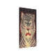 このメタルウォールアートプリントは、アジアの虎に黒いが付ストライプき、赤いドットの黒い背景に赤で縁取られた激しい顔が付いている。
