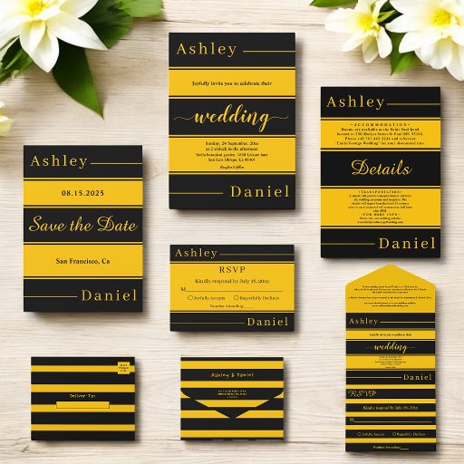 黒エレガントファンシーと金ゴールドストライプシック結婚ズ セーブザデート