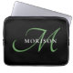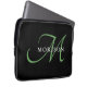 黒エレガントモダン緑スクリプトモノグラム ラップトップスリーブ