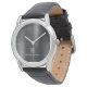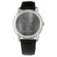 黒パーソナライズされたエレガントモノグラムのブラシ仕上げメタリック時計。