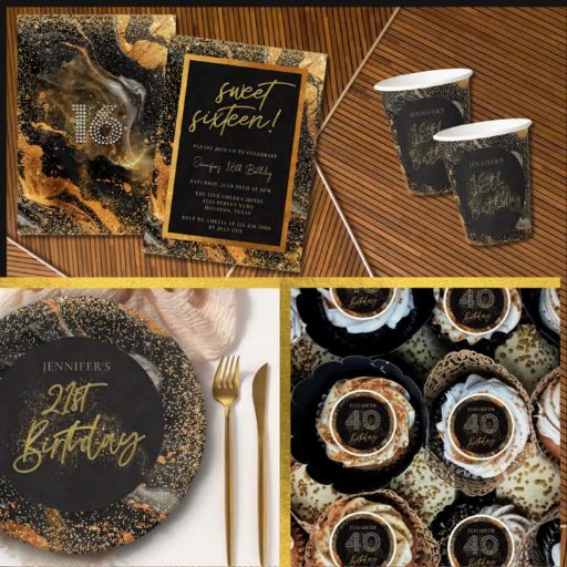 黒エレガント金ゴールドグリッター100th誕生日パーティー 招待状
