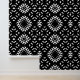 この剥離とスティック壁紙ははっきりした、コンテンポラリーデザイン。パターンは、複雑な線の詳細を持つ相互に接続されたダイヤモンドの形状で構成され、深さと動きの光学的な錯覚を作成する。この配色は単色で、鮮明な黒い背景に白いダイヤモンドが付いている。全体的に、どの部屋でも声明を出す印象的で魅力的な装飾の一部である。