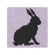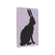 このメタルウォールアートプリントは、紫色の背景に黒いシルエットで座っているウサギのサイドプロフかわいらしィールをパターン(の模様が)ある持つ。