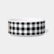 ベージュユニーク/タン犬の骨銘板と素朴な農家のバッファローのチェックの背景を黒と白の色でパーソナライズされたカスタム、クラシックのオールキャップセリフ文字で名前を示すペットドッグボウルパターン(の模様が)ある。お気にスタイリッシュ入りの家族のメンバーのための水と食べ物のボウル,中と大きいサイズで利用可能。