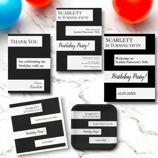 黒ミニマル白シックエレガント50誕生日 招待状