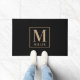 黒モダンとタンの姓モノグラム ドアマット