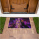 黒モダンと紫のフラクタル ドアマット