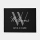黒モダン灰色モノグラム新婚結婚者 ドアマット