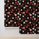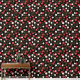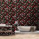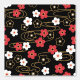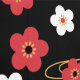 黒、赤、白の桜さくらんぼの花と黒い背景の黄金の渦巻きの様式化されたベクトルイラストレーション。インスパイア伝統的日本の着物柄。