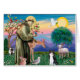 聖人フランシスは、宗派を超える姿で、動物の守護聖人である。この姿は14世紀のジョットの最高傑作を元にオリジナルの背景に挿入され、黒白のアメリカンショートヘアの猫が描かれている。