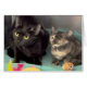 この猫テーマの挨拶またはメッセージカードの設計特微はFrederick郡動物からの黒い国内(アメリカの) shorthair (DSH)の避難所猫そしてtortoiseshellの子ネコのデジタル色の写真制御します。 それは猫好きのためのユニークなギフトを作ります!