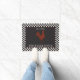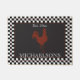 黒と白のチェックと黒の赤い雄鶏を中心に備え赤と白た、錆びたモノグラムのドアのマットのデザインで縁どは、あなたの家のプライドをフロントドアで右に表示する。家族の名前と年を確立してパーソナライズ。デザイン別休日ハートデザイン(権利予約済み)。