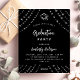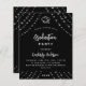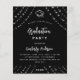 銀の星と飾キャフェイクップを持つ黒い背景。名前とパーティー・詳細のパーソナライズおよび追加文字卒業と名前は手で書いた書スタイルスクリプトでモダンある。1枚= 1枚の招待状を印刷したエッジからエッジ
