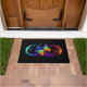 黒鮮やかに虹の蝶がある無限大 ドアマット
