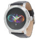 黒鮮やかに虹の蝶がある無限大 腕時計