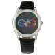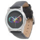黒鮮やかに虹の蝶がある無限大 腕時計