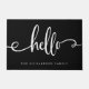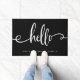 この玄関マットは"こんにちは"言う豊富で黒い背景をおよびモダンで白いタイポグラフィを特色にします。