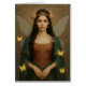 This enchanting artwork features a fairy princess in a teal green and crimson red gown adorned with golden embroidery, set against a grayish-brown background with floral motifs. Her serene gaze and shimmering iridescent wings evoke a sense of regal grace and timeless fantasy. Perfect for lovers of fairy tales, fantasy art, and magical elegance. This artwork was generated by AI based on original human concepts.