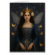 This enchanting artwork features a fairy princess in a royal blue gown adorned with golden embroidery, set against a deep navy background with floral motifs. Her serene gaze and shimmering iridescent wings evoke a sense of regal grace and timeless fantasy. Perfect for lovers of fairy tales, fantasy art, and magical elegance. This artwork was generated by AI based on original human concepts.
