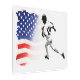 1塁走場 – 野球選手と米国国旗 メタルプリント