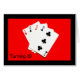 ハート2枚、遊スペード2枚、ダイヤ3枚、クラブ3枚の4枚のカードの写真が私の「10歳になるのは大きな問題だ!」のテーマだ。 誕生日カード。 合計10ポイントのカードは、明るい赤の背景に見事に表示されます。