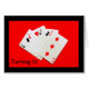 スペード2枚、ハート3枚、クラブ3枚、ダイヤ3枚の写真が私の「11歳になるのは大問題だ!」のテーマだ。 誕生日カード。 合計11枚の4枚のカードが、明るい赤色の背景に見事に表示されます。