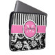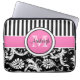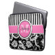 花のダマスク織パターンラップトップスリーブが付いているこのシックで、粋で名前入りで黒く、ピンクの、白のストライブ柄にあなた自身の名前、イニシャル、モノグラム、商号、または他の文字とカスタマイズべきあなたのためのテキスト・ボックスがあります。 カスタマイズ助けを必要としたらniteowlstudio@gmail.comに電子メールを送って下さい。