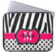 15"ピンクの黒いシマウマのストライプな水玉模様のラップトップの箱 ラップトップスリーブ