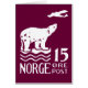 1925年ノルウェー15号空郵便切手。このスタンプには、飛行機が便を配達するのを見ている氷床にホッキョクグマが付いている。このデザインはダークブルー、ホワイト、ライトブルーで提供。
