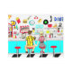 手で描いたデジタルアート、若い懐かしいカップルは手を持つダイナーに座ってミルクシェイクを飲んで、若い愛で。