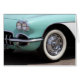 1959年のヴィンテージのChevyコルベットの詳細: ヘッドライト、フェンダー、白い壁のタイヤが付いている車輪
