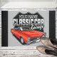 1966パーソナライズされたレッドクラシックマッスルカーガレージデザイン – 明るい赤ホット転換ヤギを搭載 – あなたの名前とカスタム文字とカスタマイズ一緒に!