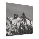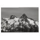 城とピナクルと呼ばれるタトシュ山脈の2つの峰の白黒の写真。山の範囲は夏にもかかわらず雪で覆われている。山や山々の周りに木や石が点在している。太陽の位置は、山に影を投げることを可能にする。雲にかまわれて天が昇る。Image Copyright ©2023 Kimberly J Tilley. zazzle.com/store/developingnature